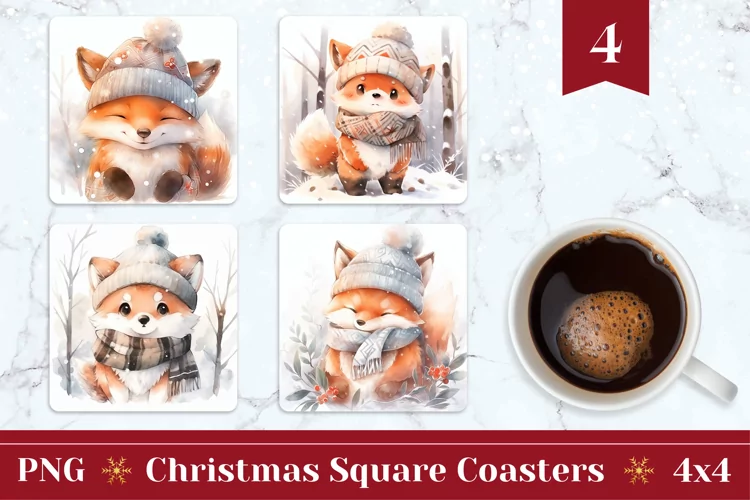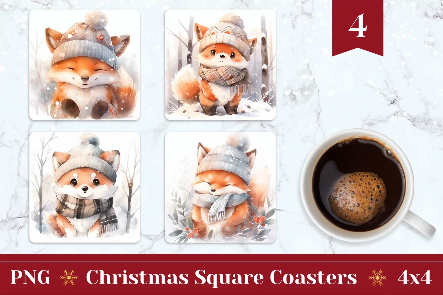Christmas Sublimation Designs Baby Fox Sublimation Christmas Coaster Sublimation Watercolor Fox Sublimation Square Christmas Coasters Christmas Fox Coaster Watercolor Winter Coasters Watercolor Christmas Coasters Fox Mug Coaster Christmas Coffee Mug Coaster