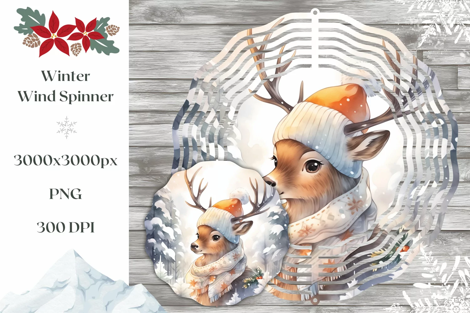 Christmas Wind Spinners, Watercolor Winter Deer Sublimation example image 1
