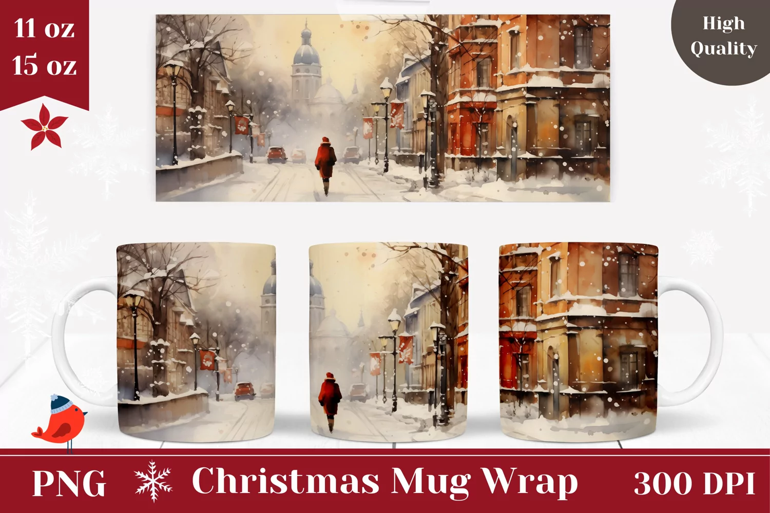 Watercolor Christmas Coffee Mug Wrap, Christmas Sublimation