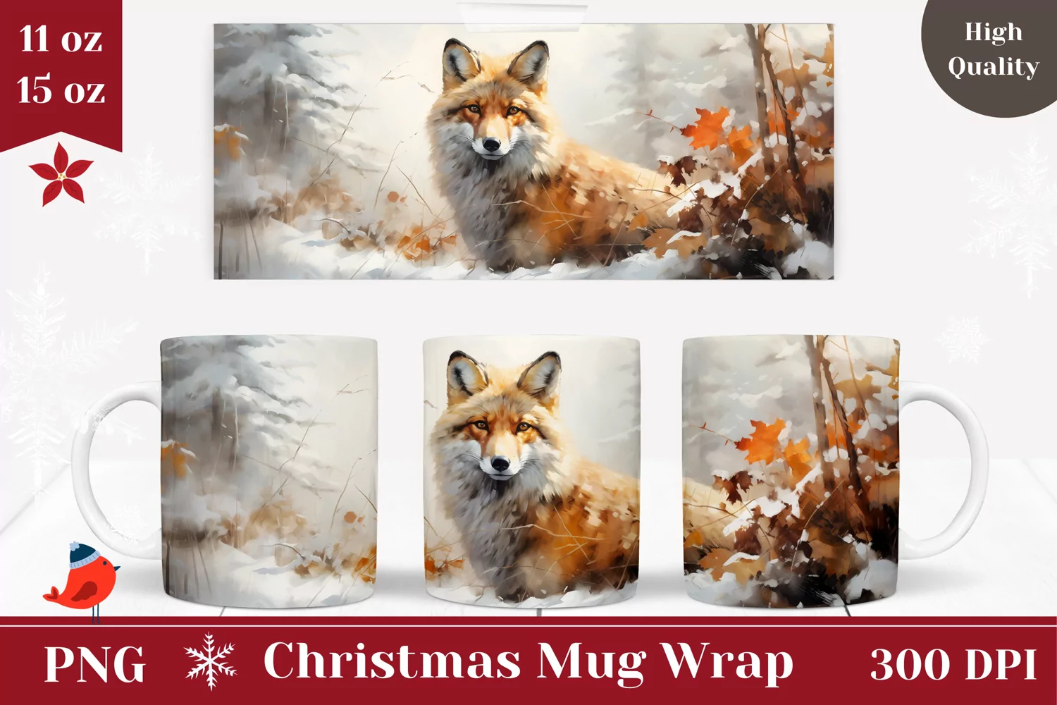 Christmas Fox Mug Wrap Design, Christmas Coffee Cup Design example image 1