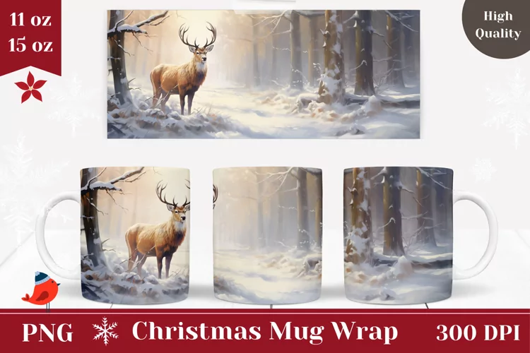 Winter Deer Mug Sublimation, Christmas Coffee Cup Design