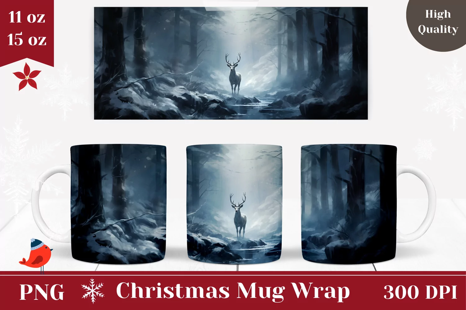 Winter Deer Mug Template, Christmas Coffee Cup Design example image 1