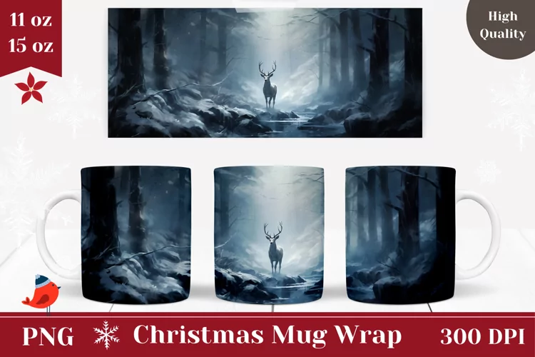Winter Deer Mug Template, Christmas Coffee Cup Design