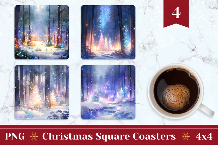 Winter Sublimation Christmas Sublimation Designs Christmas Coaster Sublimation Christmas Forest Sublimation Winter Coaster Design Square Christmas Coasters Christmas Mug Coaster Christmas Coffee Mug Coaster Christmas Forest Coaster Night Forest Coasters