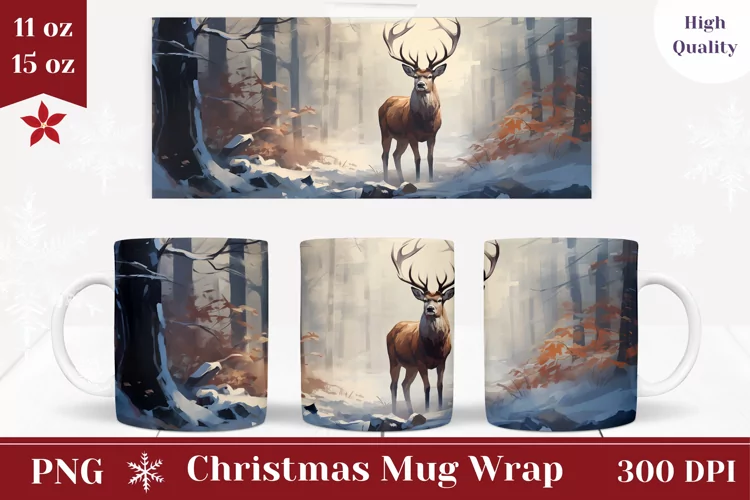 Christmas Mug Sublimation Sublimation Coffee Mug Design Wild Animal Mug Design Nature Mug Wrap Printable Christmas Coffee Mug Wrap Template Winter Deer Mug Wrap Winter Forest Mug Design Forest Landscape Mug Watercolor Deer Mug Png Winter Deer Sublimation Designs