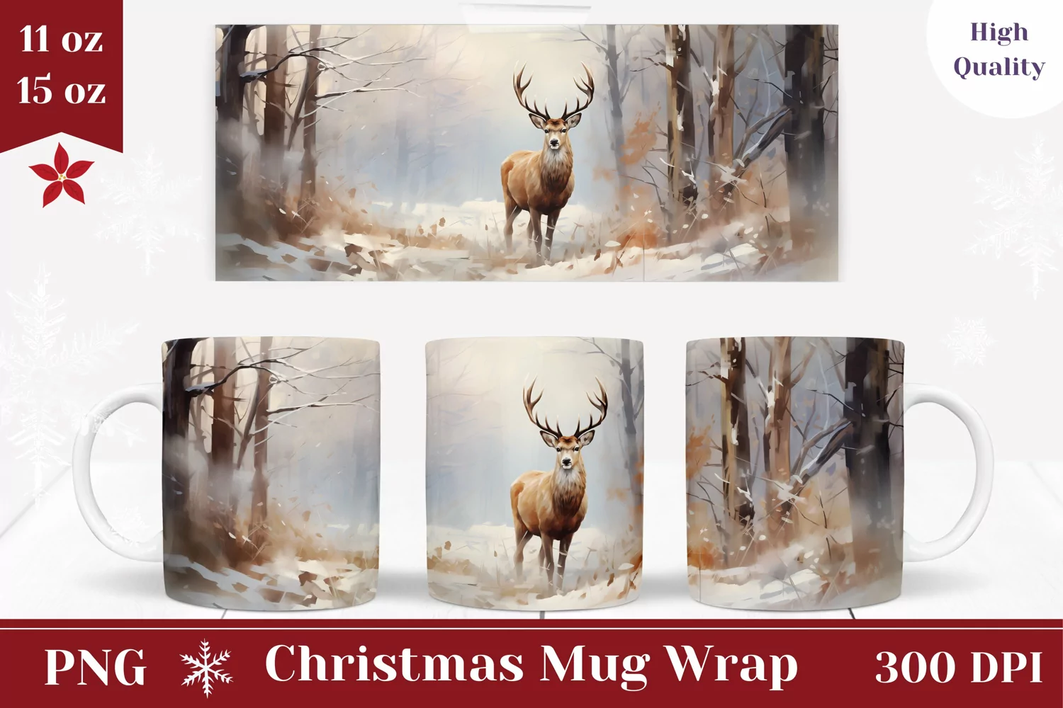 Christmas Mug Sublimation Sublimation Coffee Mug Design Wild Animal Mug Design Nature Mug Wrap Printable Christmas Coffee Mug Wrap Template Winter Deer Mug Wrap Winter Forest Mug Design Forest Landscape Mug Watercolor Deer Mug Png Winter Deer Sublimation Designs