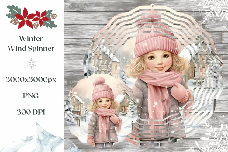 Christmas Wind Spinner Sublimation with Watercolor Girl.