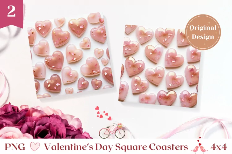 3D Valentines Square Coasters, 3D Hearts Square Coaster PNG example image 1