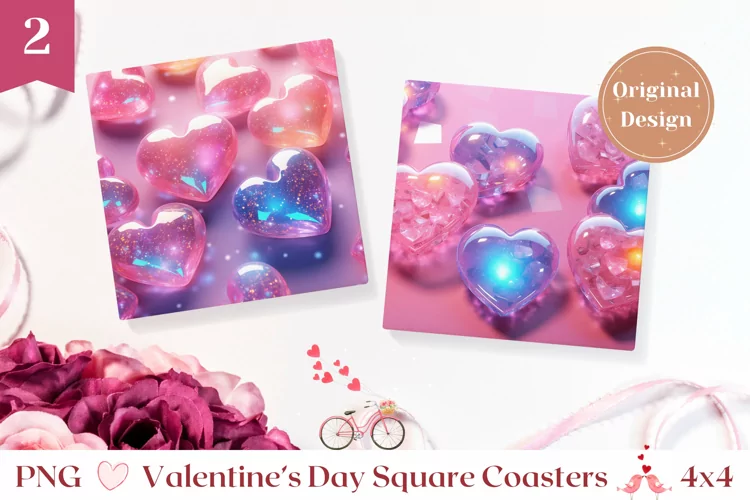 Valentines Square Coasters, 3D Crustal Heart Coaster Design example image 1