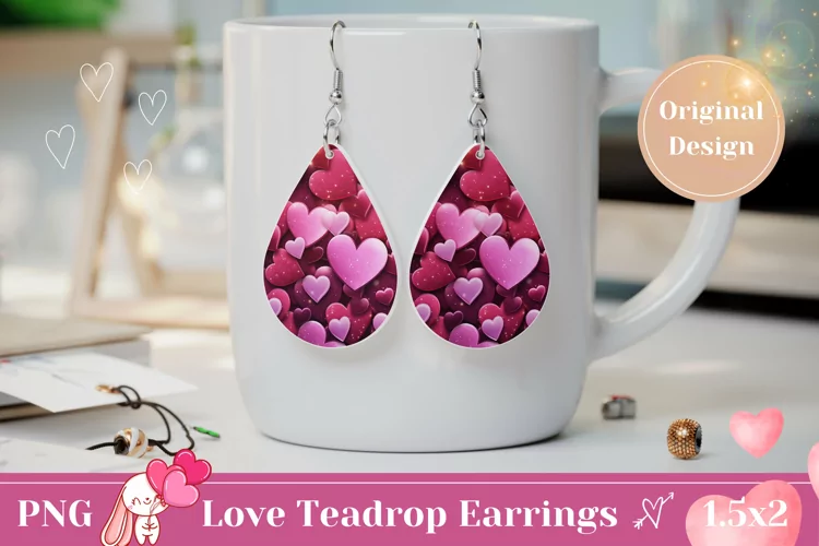 Similar Design Products to 3D Hearts Teardrop Earrings, Love Earring Sublimation Design