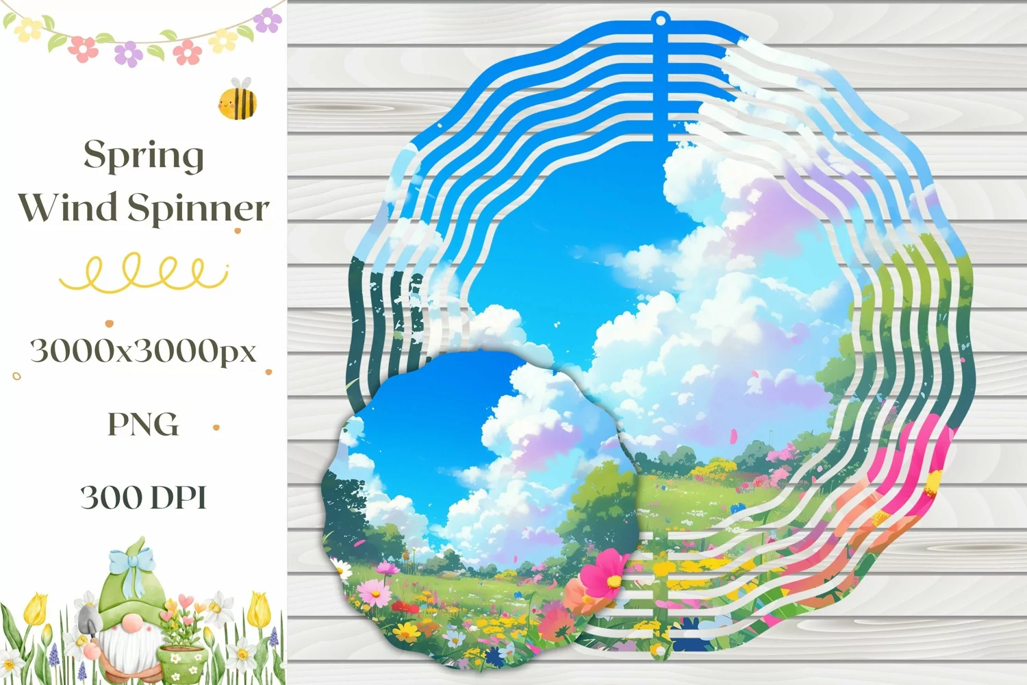 Spring Wind Spinner Sublimation with Cute Flowers.