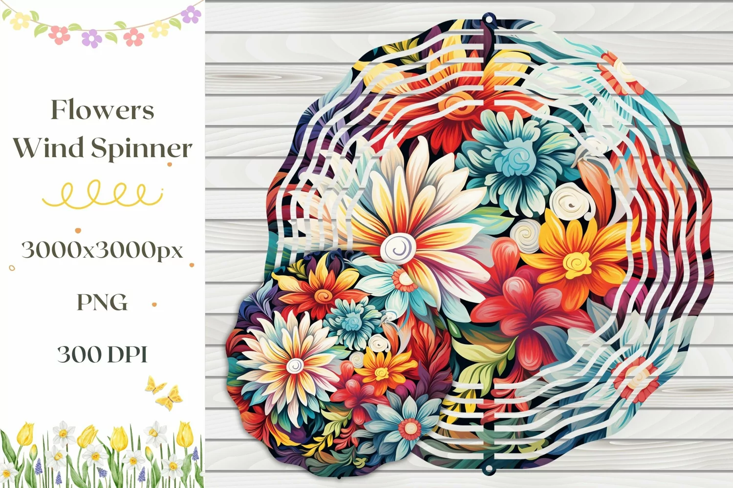 Colorful Flowers Wind Spinner Design, Floral Wind Spinner example image 1