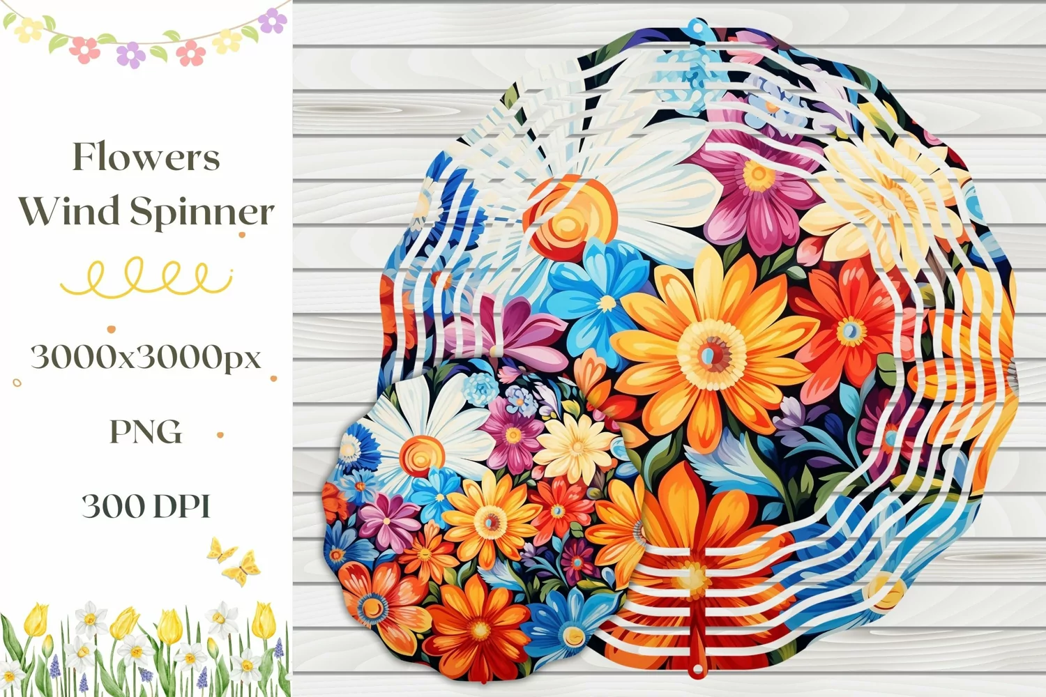 Spring Wind Spinner Sublimation with Cute Flowers.