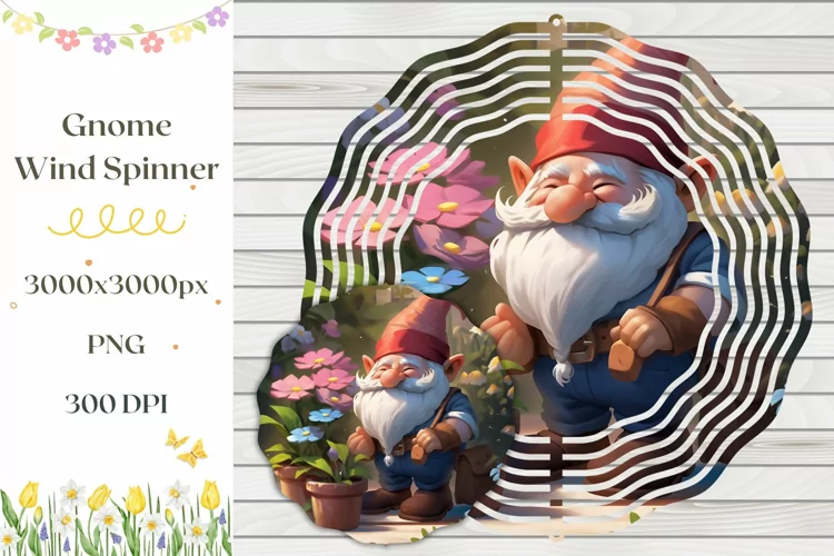 Spring Wind Spinner Sublimation with Cute Gnome.