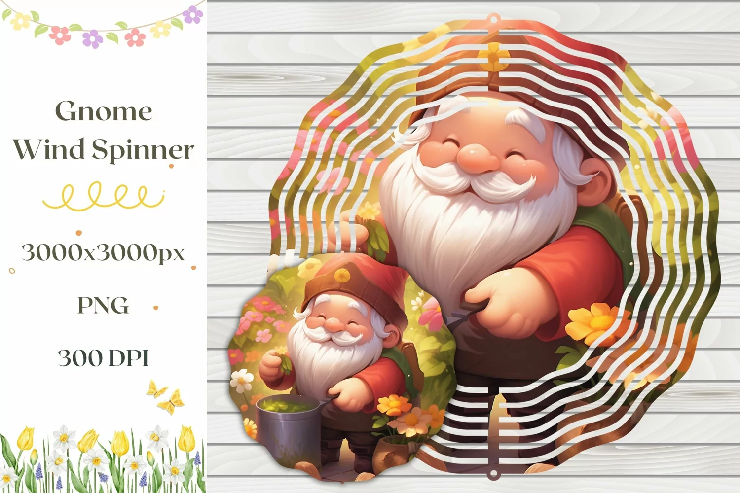 Floral Garden Gnome Wind Spinner, Spring Wind Spinner Design example image 1