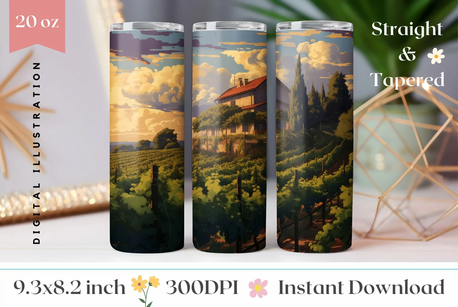 Summer Tumbler Wrap Design, Vintage Vineyard Tumbler Design
