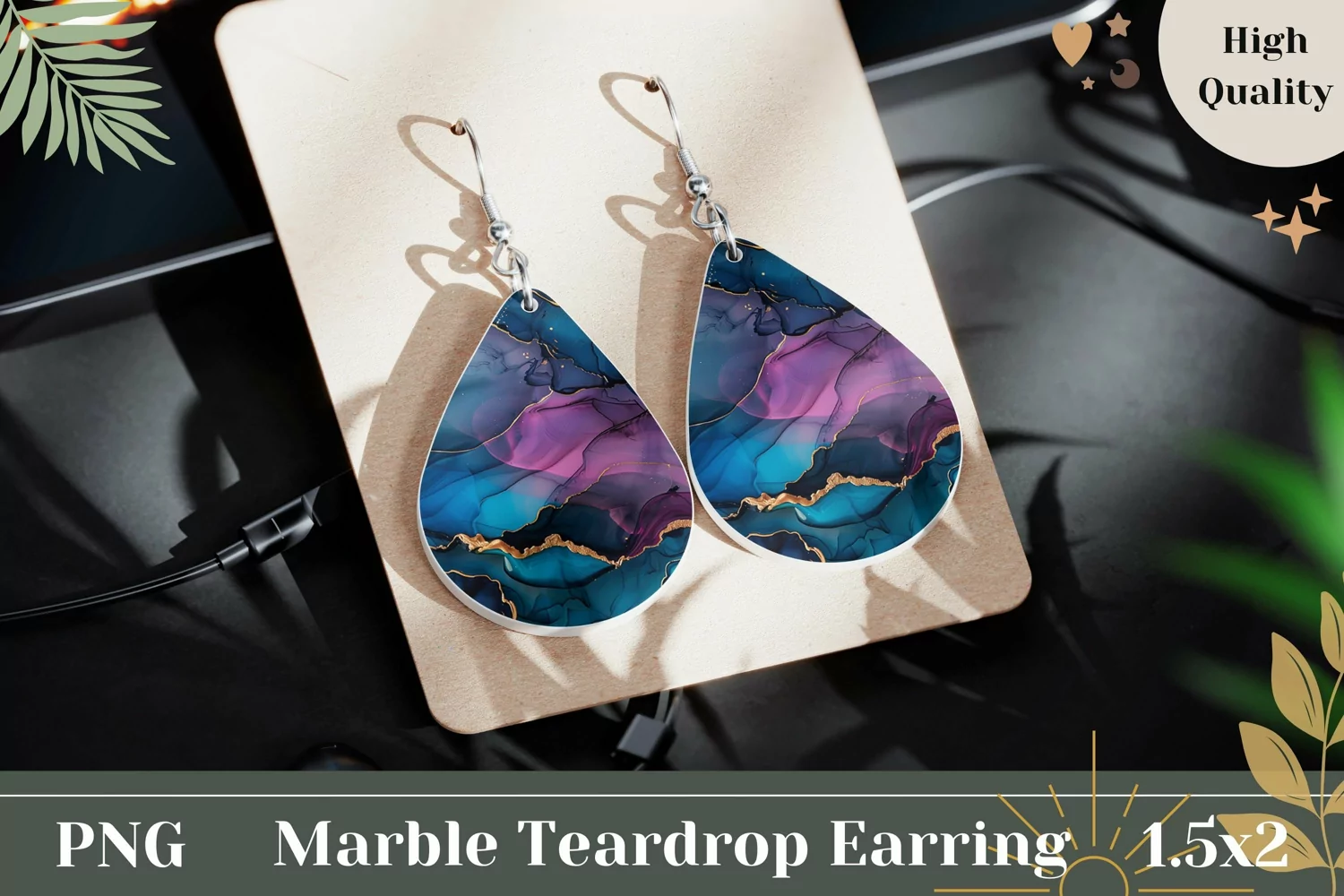 Similar Design Products to Blue Marble Teardrop Earrings, Liquid Earring Sublimation
