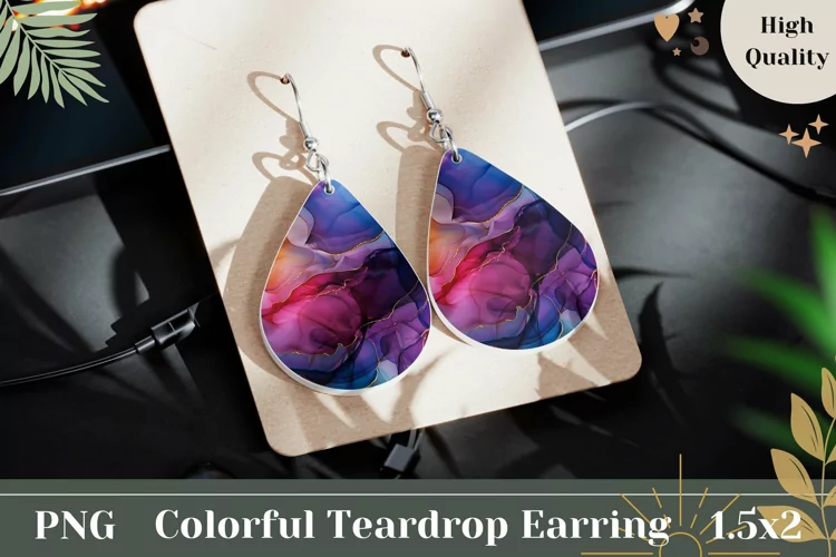 Fluid Art Teardrop Earrings Design, Alcohol Ink Earrings PNG example image 1