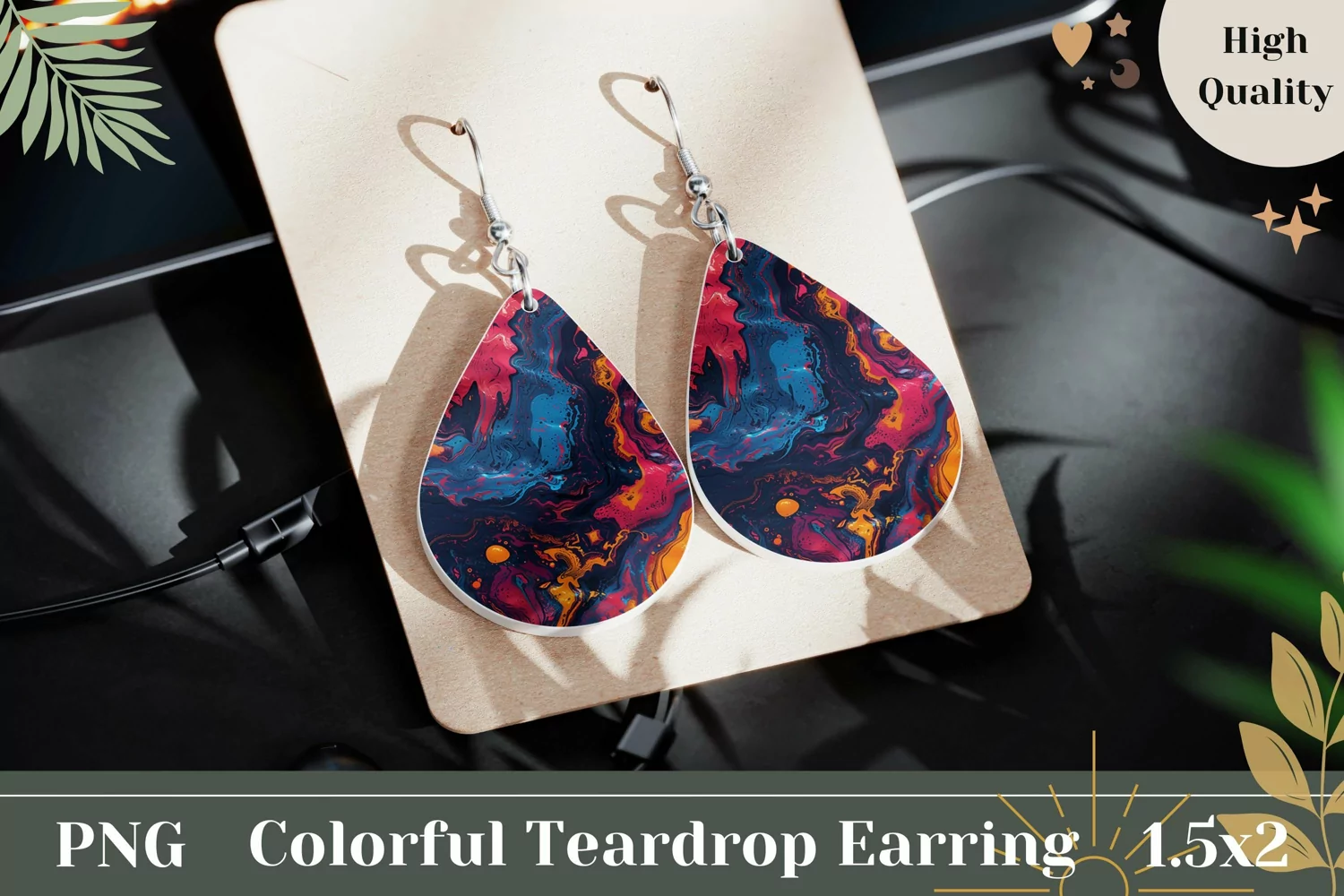 Similar Design Products to Glitter Teardrop Earrings PNG, Fluid Art Earrings Design