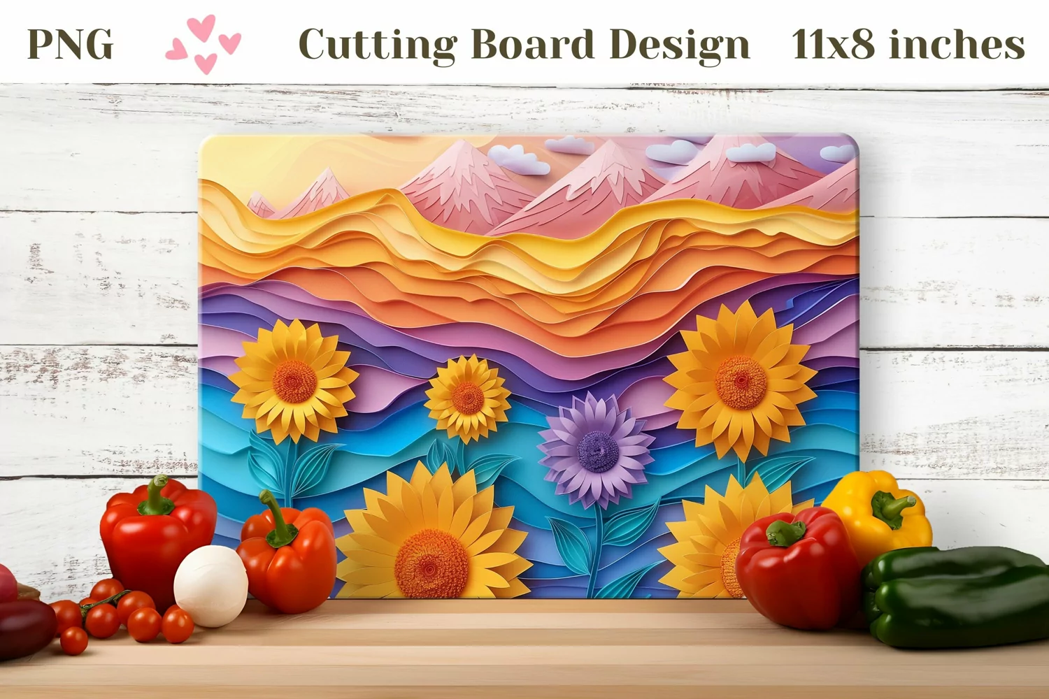 3D Sunflowers Cutting Board, Mountains Cutting Board Design