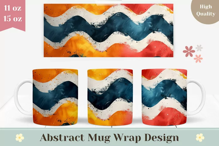 Abstract Mug Wrap Design, Colorful Wave Mug Sublimation