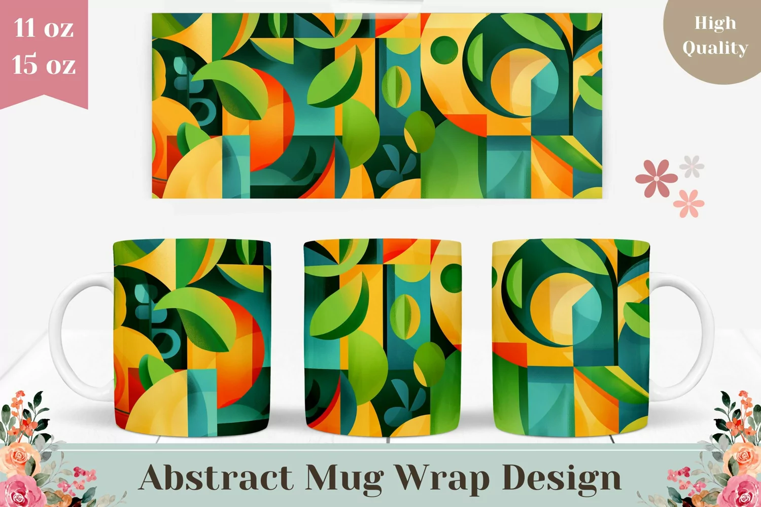 Abstract Mug Wrap Design, Floral Mug Sublimation PNG example image 1