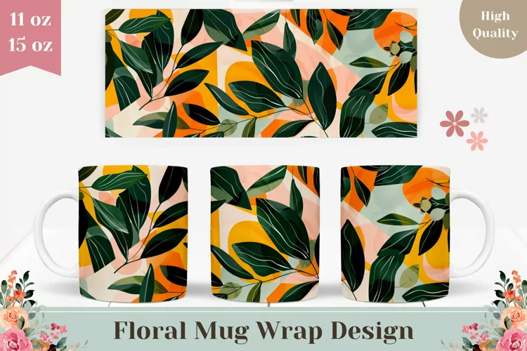 Floral Mug Wrap Design, Tropical Mug Sublimation Design