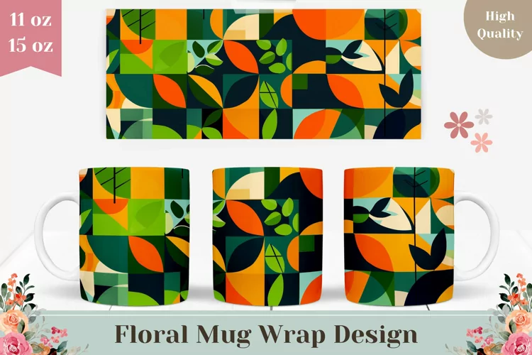 Abstract Mug Wrap Design, Floral Mug Sublimation Design