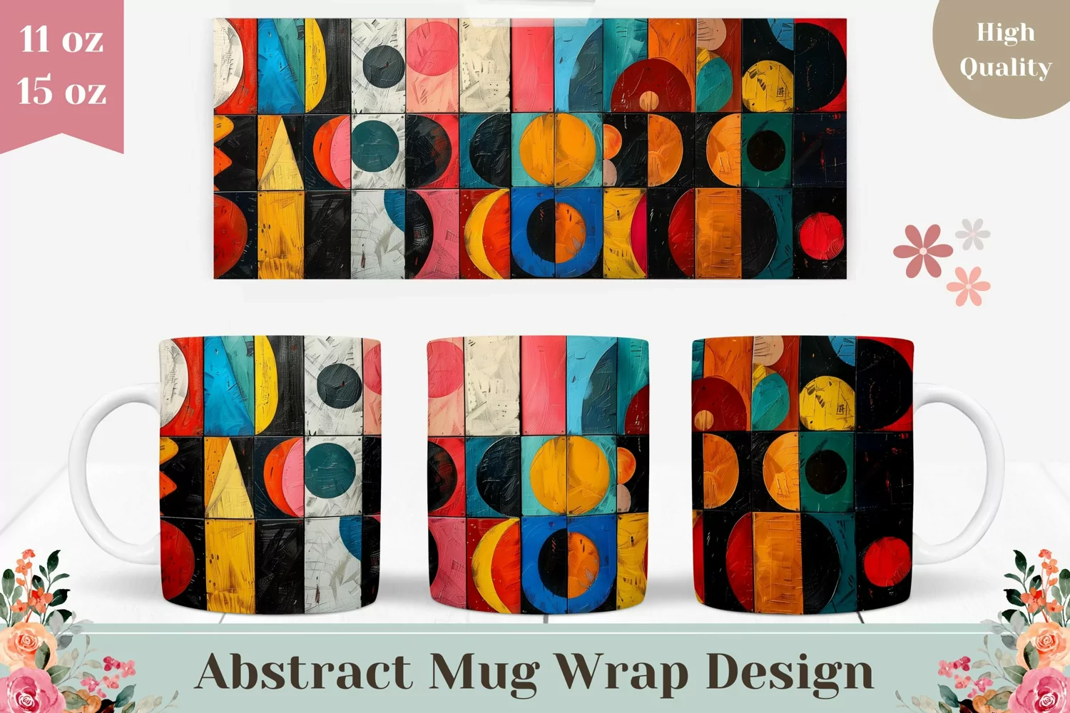 Colorful Art Mug Wrap, Abstract Mug Template Design