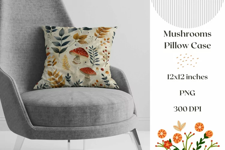 Mushrooms Pillow Case Design, Forest Pillow Sublimation PNG example image 1