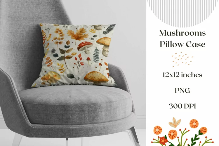 Pillowcase Pillow Cover Autumn Pillow Design Floral Pillow Sublimation Pillow Case Sublimation Forest Pillow Case Design Mushrooms Pillow Design Watercolor Mushrooms Sublimation Design Watercolor Leaves Pillow Case Watercolor Forest Sublimation Png