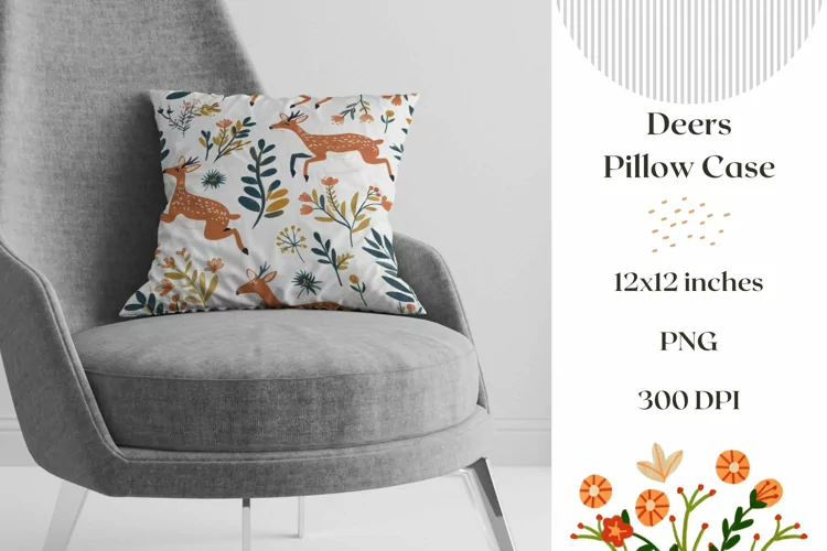 Cute Deer Pillow Case Design, Floral Pillowcase Sublimation