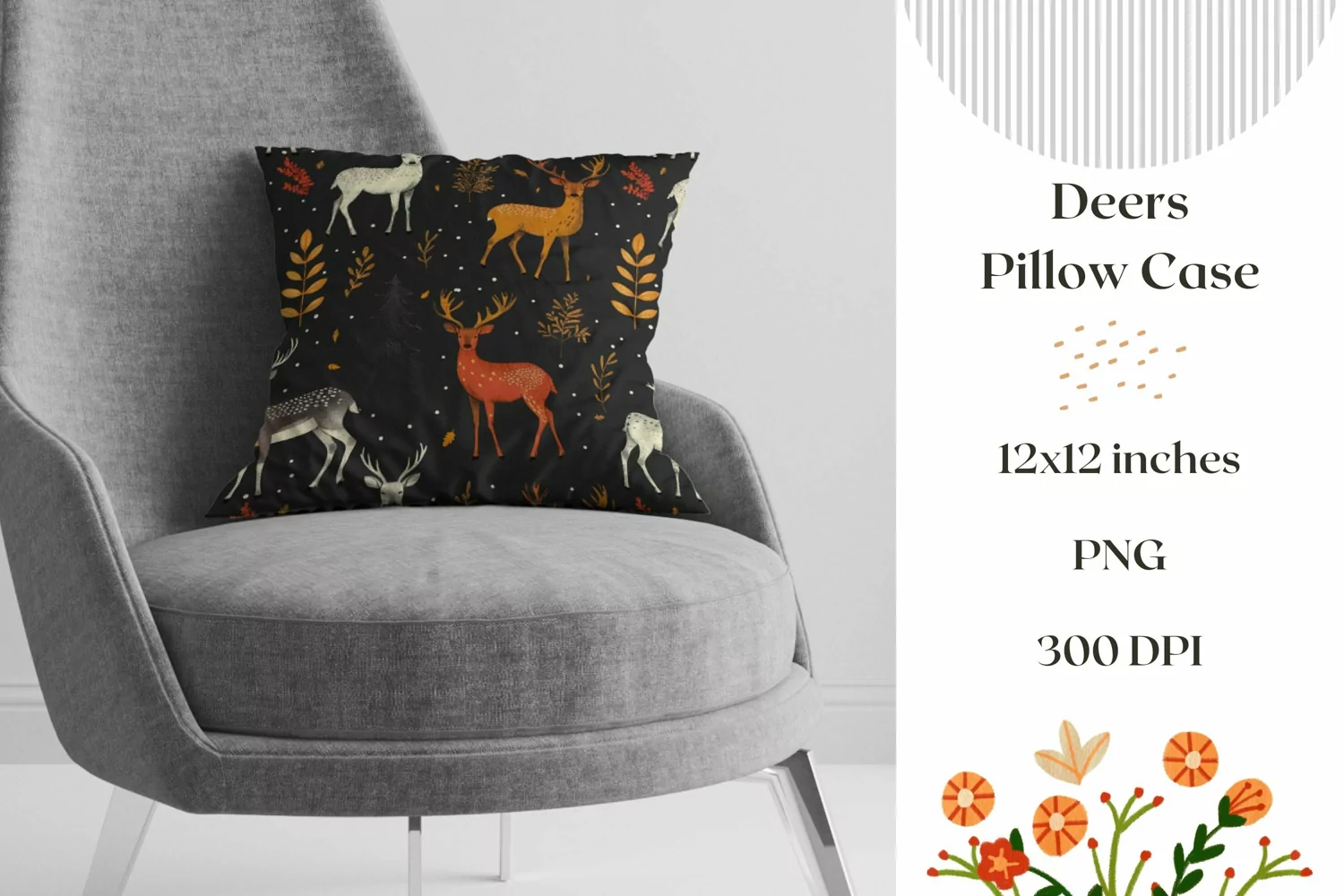 Cute Deer Pillow Case, Forest Animals Sublimation Pillow PNG example image 1