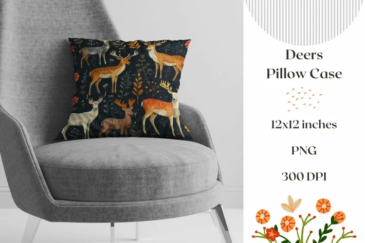 Deer Pillow Case Design, Cute Pillow Design, Animal Print