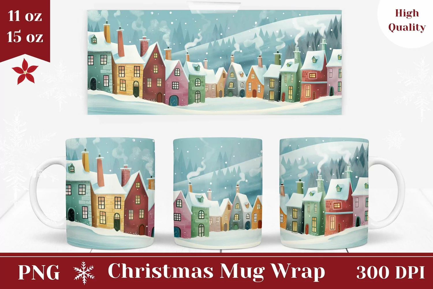 Christmas Mug Wrap Design, Christmas Houses Mug Sublimation