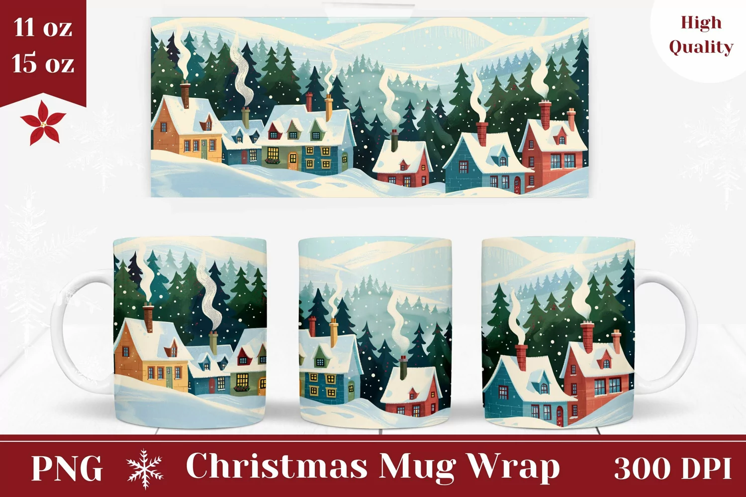 Christmas Mug Wrap Design, Christmas Sublimation Mug 15 Oz