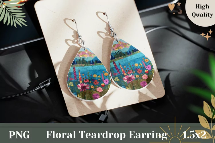 Floral Print Summer Sublimation Design Nature Earrings Mountains Earrings Template Creative Earrings Summer Teardrop Earrings Floral Earrings Design Summer Earrings Png Flowers Teardrop Earrings Floral Teardrop Earrings