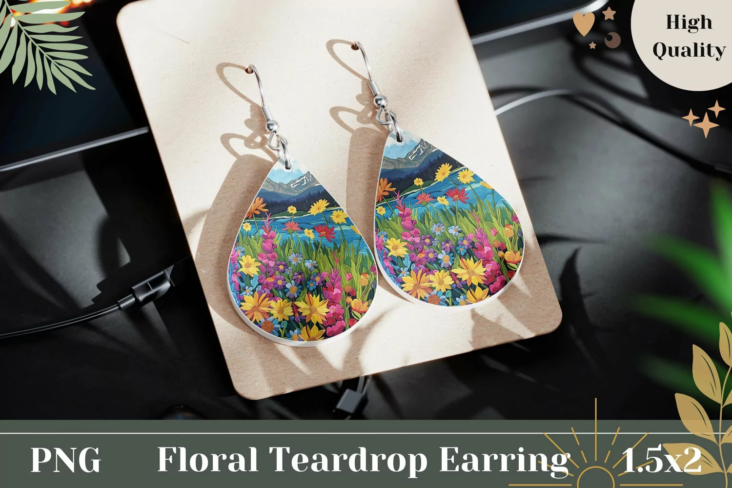 Floral Print Summer Sublimation Design Nature Earrings Mountains Earrings Template Creative Earrings Summer Teardrop Earrings Floral Earrings Design Summer Earrings Png Flowers Teardrop Earrings Floral Teardrop Earrings
