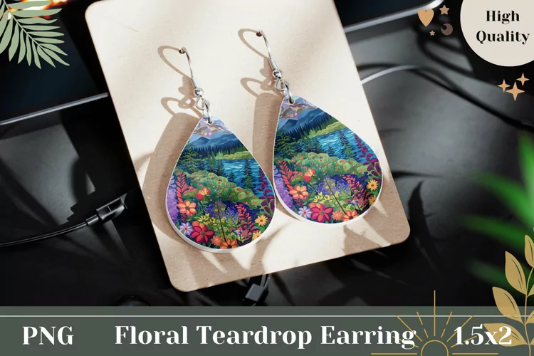 Floral Print Summer Sublimation Design Nature Earrings Mountains Earrings Template Creative Earrings Summer Teardrop Earrings Floral Earrings Design Summer Earrings Png Flowers Teardrop Earrings Floral Teardrop Earrings