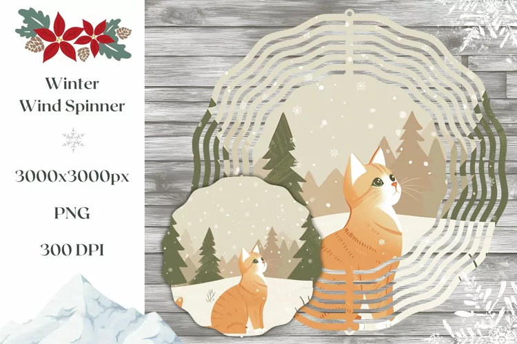 Cute Cat Wind Spinner Design, Winter Forest Wind Spinner PNG example image 1