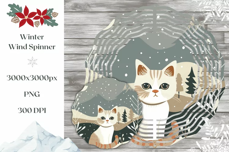 Cat Wind Spinner Sublimation, Winter Forest Wind Spinner example image 1