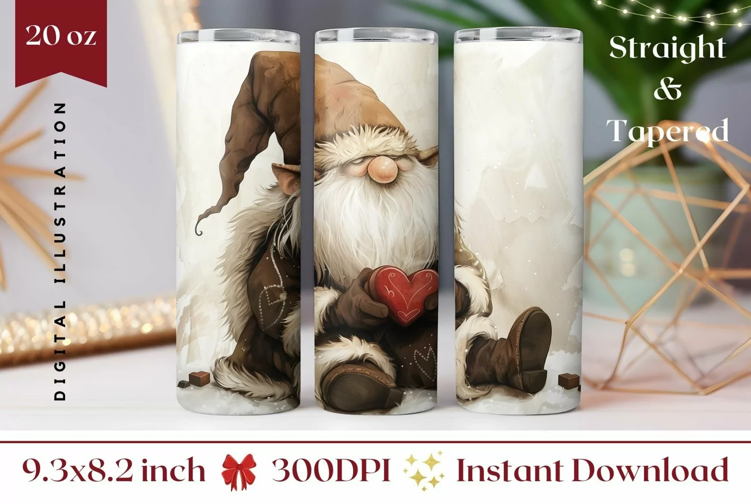 Christmas Gnome Tumbler, Watercolor Christmas Tumbler Wrap