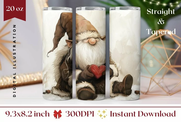 Christmas Sublimation Tumbler Wrap. Colorful sublimation design with Christmas Gnome.