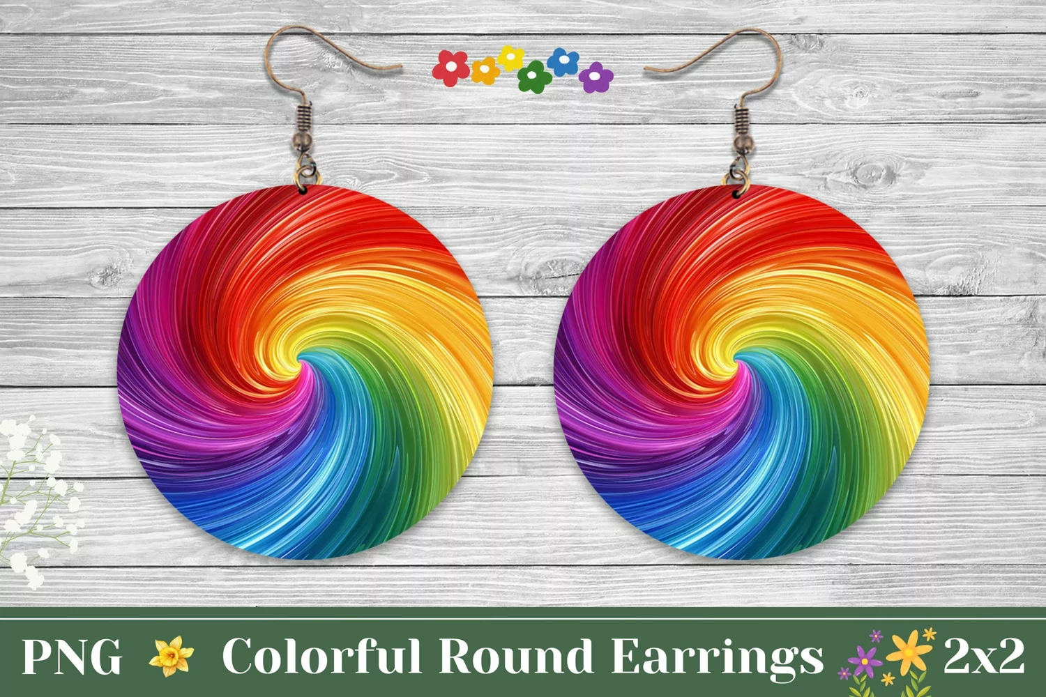 Colorful Round Earrings, Rainbow Swirl Earring Sublimation example image 1