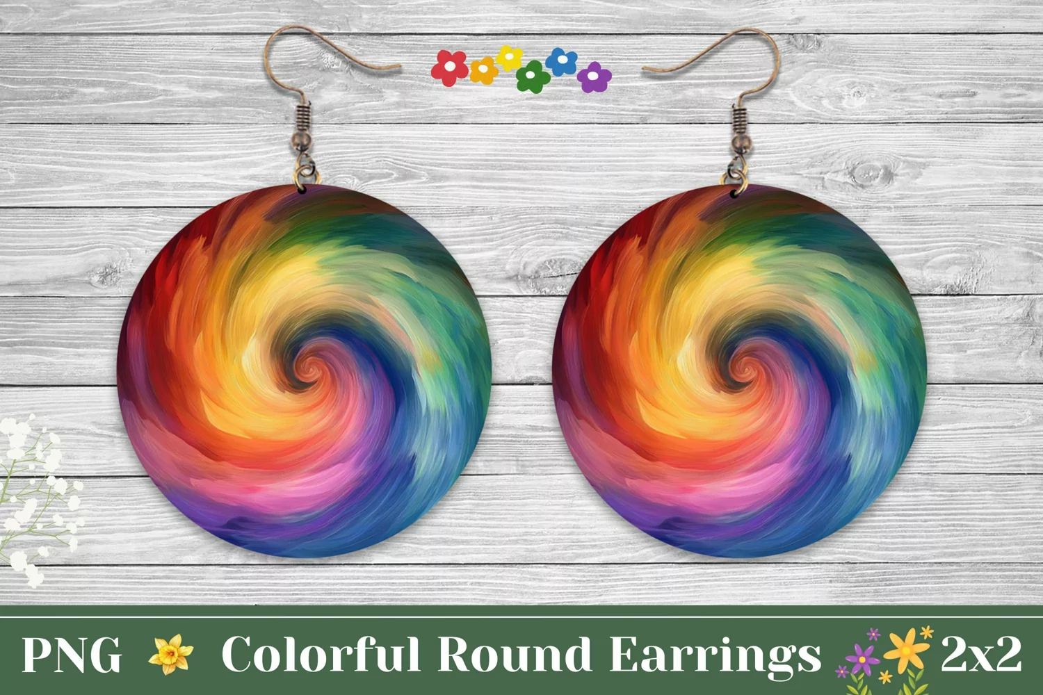 Colorful Round Earrings, Rainbow Swirl Earring Template