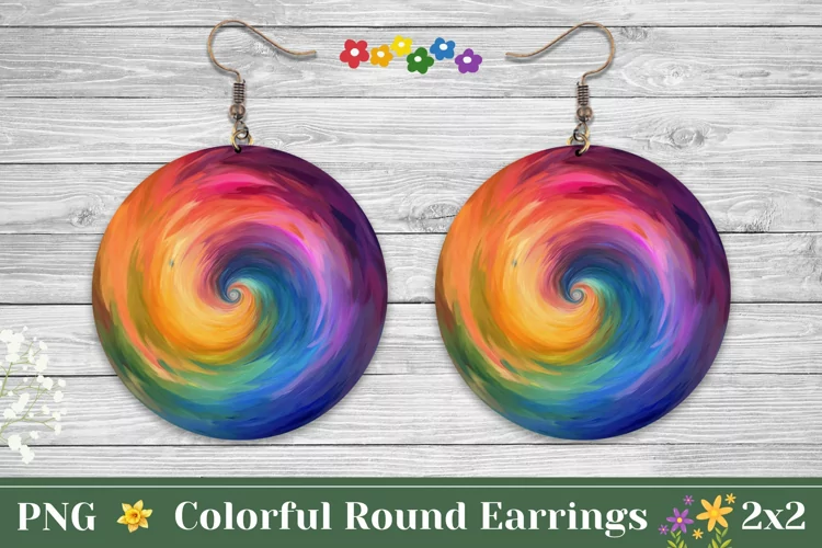 Abstract Earrings Sublimation Round Earrings Rainbow Earrings Sublimation Abstract Round Earring Rainbow Round Earrings Colorful Earrings Png Art Paint Earrings Design Rainbow Swirl Earrings Paint Swirl Round Earrings Liquid Earring Template