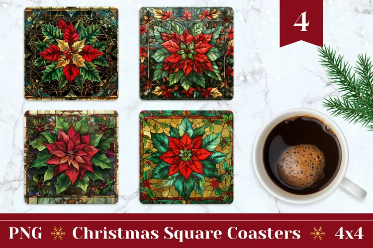 Christmas Print Christmas Sublimation Designs Winter Coaster Christmas Flowers Png Christmas Poinsettia Sublimation Christmas Poinsettia Coasters Christmas Square Coasters Stained Glass Christmas Png Winter Square Coaster Designs Christmas Flowers Coaster