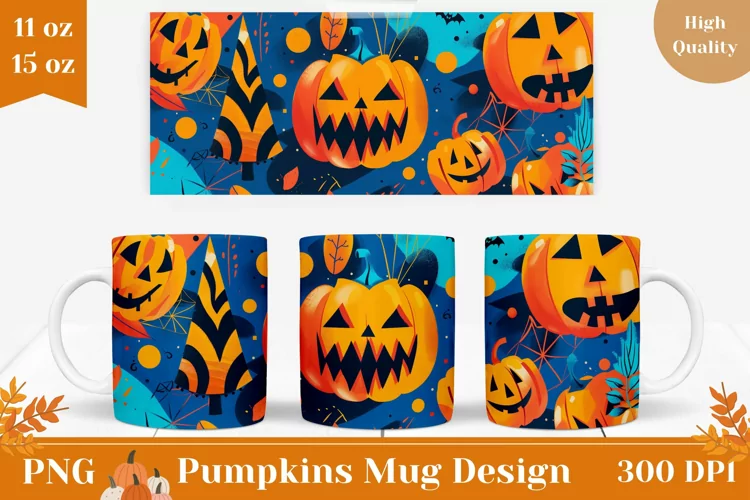 Similar Design Products to Halloween Pumpkins Mug Wrap, Halloween Mug Template