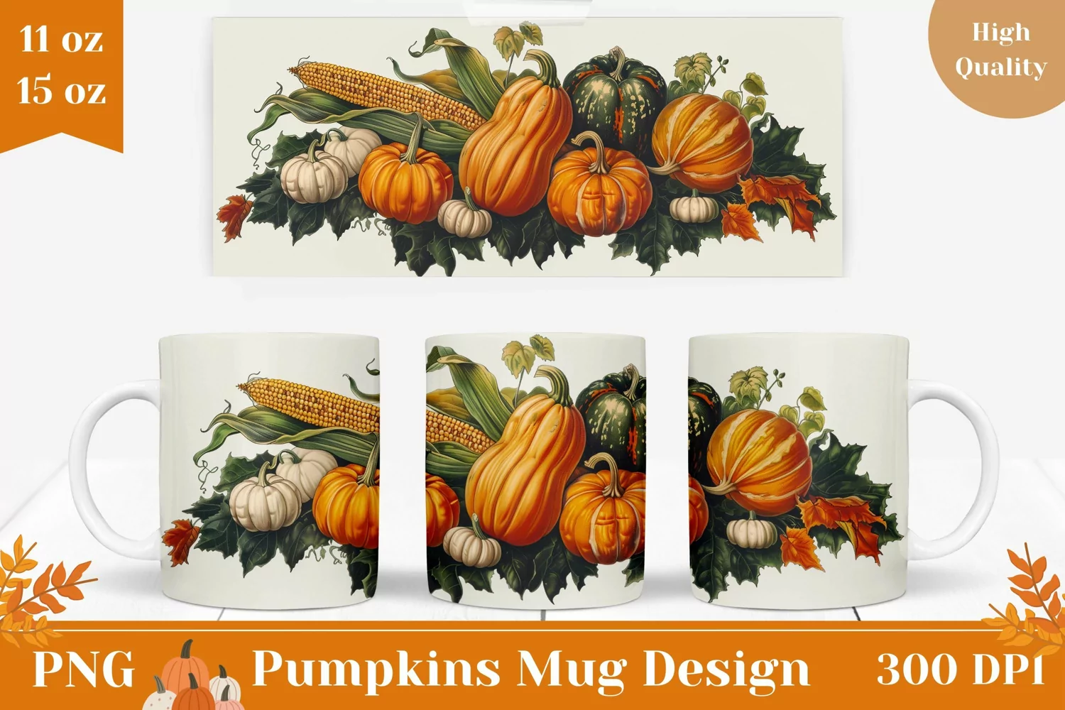 Vintage Fall Mug Wrap, Harvest Pumpkin Mug Sublimation