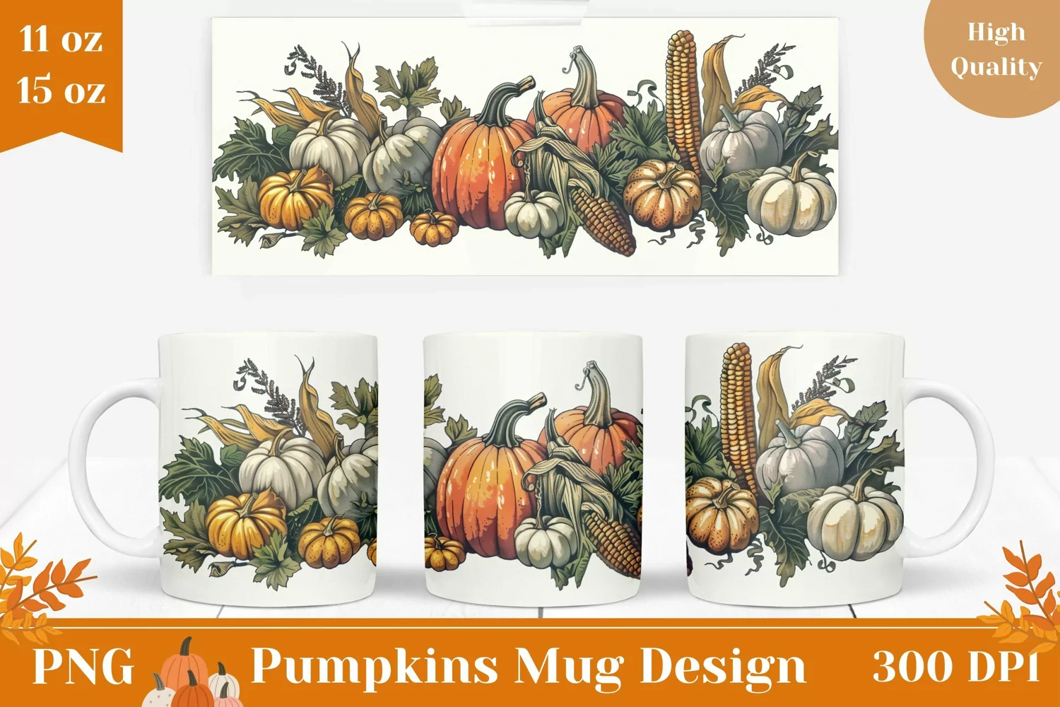 Similar Design Products to Vintage Autumn Mug Wrap Design, Harvest Pumpkin Mug Template